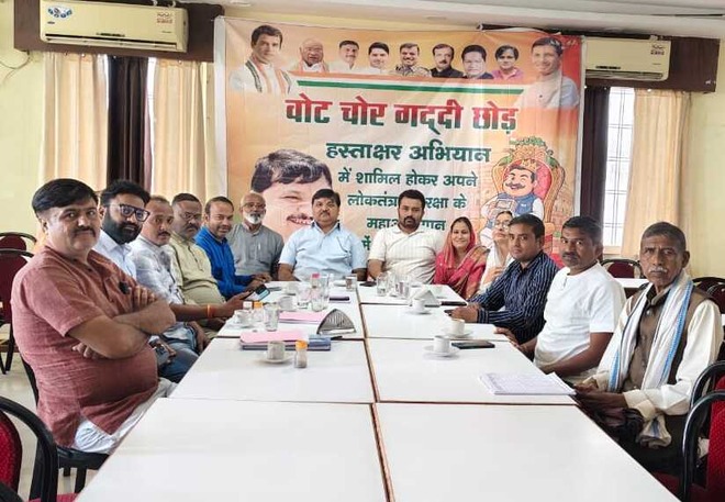 बैठक में आगामी समय में प्रत्येक वार्ड में घर घर जाकर और प्रमुख चौराहों में शिविरों का आयोजन कर जनता को भाजपा और निर्वाचन आयोग की मिलीभगत से जनता के वोट की चोरी के बारे में अवगत कराने का निर्णय लिया गया ।