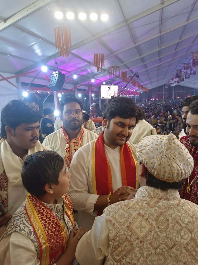 इसके बाद सभी अतिथि दद्दा जी के नवनिर्मित मंदिर पहुंचे, जहां सभी ने वैदिक मंत्रों के साथ दद्दाजी की पूजा-अर्चना की। मंदिर में दद्दा जी के दर्शन करने के बाद सभी अतिथि कथा स्थल पहुंचे। कथा व्यास पर पहले से सुप्रसिद्ध कथा वाचक पंडित इंद्रेश उपाध्याय जी महाराज, भागवत प्रभु जी महाराज, पंडित बद्री प्रपन्नाचार्य जी महाराज विराजमान थे।