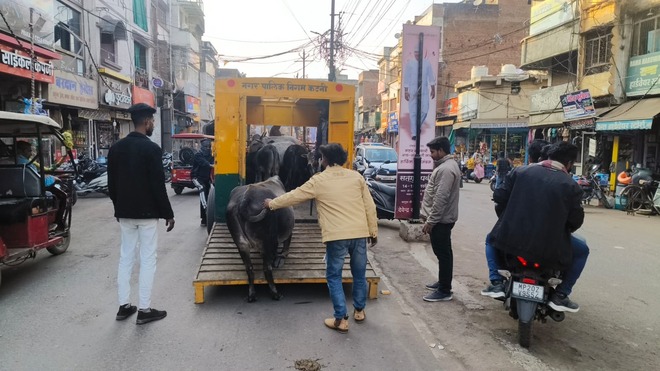 कांजी हाउस भेजे गए 10 घुमंतू मवेशी। कटनी नगर में नागरिकों को सुगम एवं सुरक्षित आवागमन उपलब्ध कराने के उद्देश्य से नगर निगम कटनी द्वारा हांका गैंग को सक्रिय किया जाकर सार्वजनिक मार्गों एवं व्यस्त चौराहों पर आवागमन में बाधा बन रहे घुमंतु मवेशियों को हटाने की कार्यवाही निरंतर जारी है।